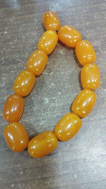 - İsti sarı–çəhrayı tonlu, parlaq səthli muncuqlar