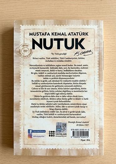 “Nutuk” – 1919–1927-ci illər arasındakı mübarizə, dövlət quruculuğu və islahatlar haqqında Atatürkün öz nitq və xatirələrini bir araya gətirən əsas mənbədir. Arxa cildə “Ey Türk gəncliyi!” ilə başlayan məşhur müraciətin tam mətni verilib. Kitabda: