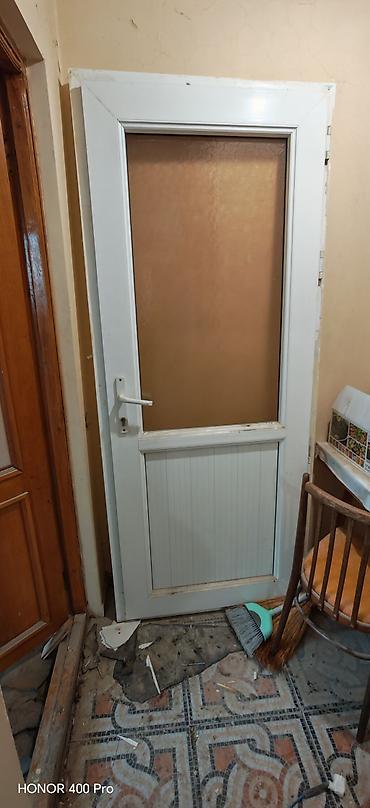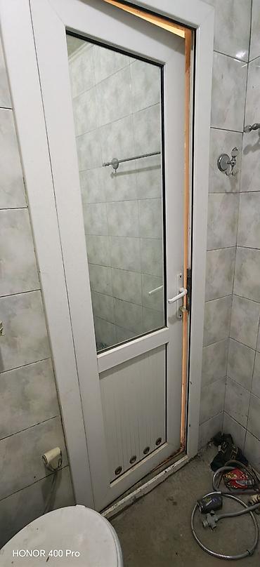 - Ağ PVC daxili qapılar (2 ədəd): Ağ rəngli plastik/profil çərçivə, yuxarı bölmədə mat/şüşə panel, aşağıda şaquli rifli dekor panel və ventilyasiya üçün dairəvi dəliklər. Dəstə uyğun ağ qollar və kilid mexanizmləri daxildir. Hamam/tualet və girişlər üçün uyğundur.
