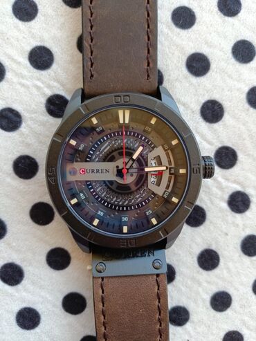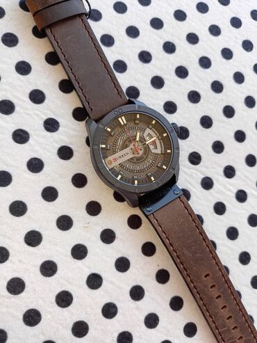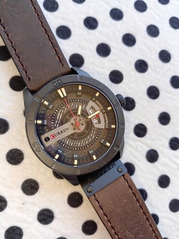 Məhsul yenidir. Curren brend saatı. Kəməri şəkildə işdənmiş kimi görsənir amma o materialın öz rəngidir belə.işlənməyib qəti. Qiymət sondur.
