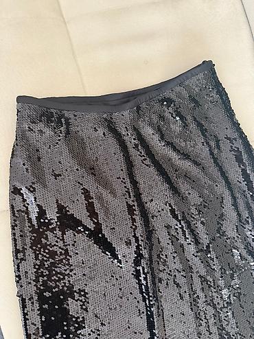 ZARA KNIT qara yubka - Brend: ZARA KNIT - Ölçü: M (EUR M / USA M / MEX 28) - Rəng: klassik qara - Model: boru/kloşsuz, bədənə oturan trikotaj yubka - Material: yumşaq trikotaj parça (etiketdə “Kni...