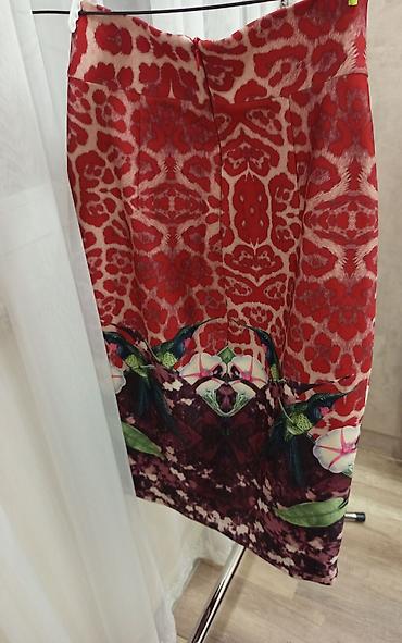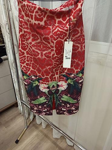 - Rəng və print: Parlaq qırmızı fon üzərində etnik/abstrakt naxışlar, ətəyin aşağı hissəsində quş və çiçək motivləri ilə bəzək.
