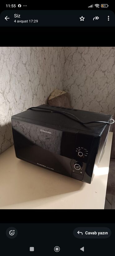 Electrolux markalı qara rəngli mikrodalğalı soba. Bu model yeməklərin qızdırılması və hazırlanması üçün istifadə edilə bilər. Daxili qızartma rafı və fırlanan nimçə ilə təchiz olunmuşdur. Qapaqda və yan tərəfdə qara idarəetmə paneli yerləşir. Elektrik enerjisi ilə işləyən mikrodalğalı soba mətbəxdə rahatlıq və funksionallıq təmin edir. Kompakt ölçüsü sayəsində kiçik mətbəxlərdə də rahatlıqla yerləşə bilər.
