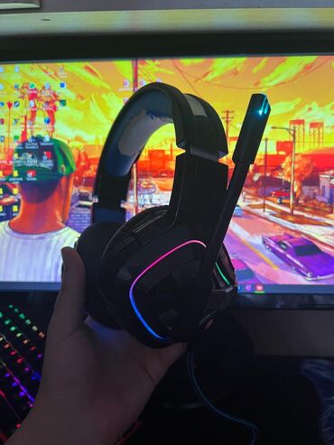 RGB işıqlı oyun qulaqlığı – mikrofonlu, naqilli