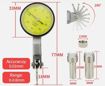 ● Yığma qolu göstərici ölçmə zondu istəyə görə 240° tənzimlənə bilər. Ölçmə zond alaşımlı volfram poladdan hazırlanmışdır. Aksessuar birləşməsi: şaft qolu φ6mm, 8mm.