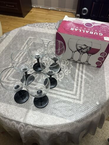 Türkiyə istehsalı, çox az işlənmiş qara altlıqlı mineral şüşə şərab qədəhləri. Heç bir problemi yoxdur, çartlaq və rəng solması olmayıb. Qiymət 12 ədəd üçündür, həzi aslanov və əhmədli metrolarına çatdırılma mümkündür.