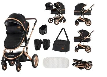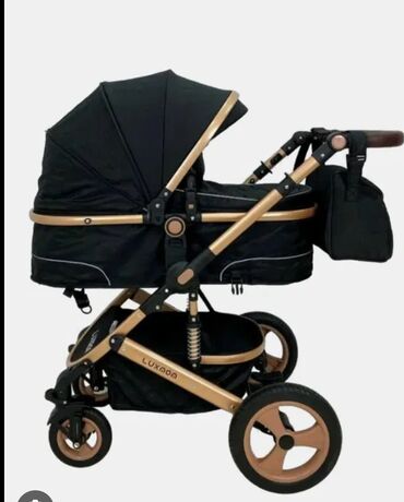 Qara rəngdə, qızılı rəngli çərçivəsi olan dəbli uşaq arabası. Yüksək keyfiyyətli materiallardan hazırlanmışdır. Uşağın rahatlığı üçün geniş oturacağı və tənzimlənən arxa hissəsi var. Böyük təkərləri sayəsində istənilən səthdə rahat hərəkət edir. Həmçinin, əlavə əşyalar üçün səbəti də mövcuddur.
