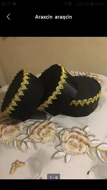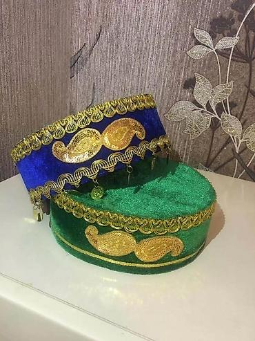 Məhsul: Əl işi bəzəkli məxməri papaq - Material: yumşaq bordo rəngli məxmər parça - Dizayn: üst kənar boyunca qızılı dalğalı lent, yanlarda şəffaf boncuk aplikasiyası - Ön bəzək: tünd qəhvəyi daş ...