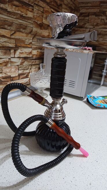 Qutuda/şəkildə görünənlər: nərgilə gövdəsi, şüşə diblik, şlanq, kasa, metal külqabı, kömür üçün maşa, plastik ağızlıq.