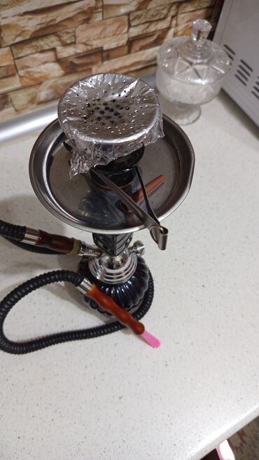 Qutuda/şəkildə görünənlər: nərgilə gövdəsi, şüşə kolba, kasa, kül lövhəsi, maşa, spiral şlanq, taxta ağızlıq və silikon ucluq.
