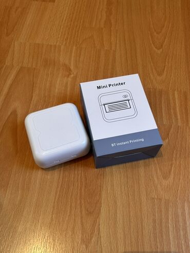 - Qutuda: Mini Printer və orijinal qutu (BT Instant Printing). İçəridə başlanğıc termal kağız rulonu görünür
