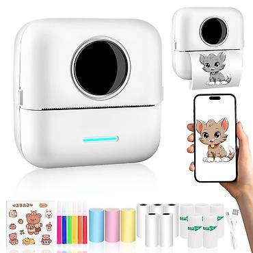 Mini printer İstenilen şəkillər, stickerler, yazılar çıxara bilərsiz. İstifadə qaydası çox sadədir. 5 ədəd rəngli və 5 ədəd ağ rulon kağız ilə birlikdə verilir