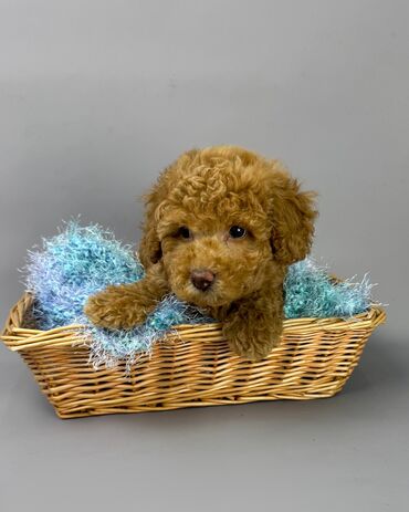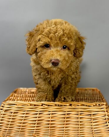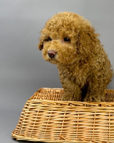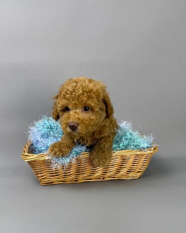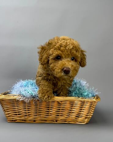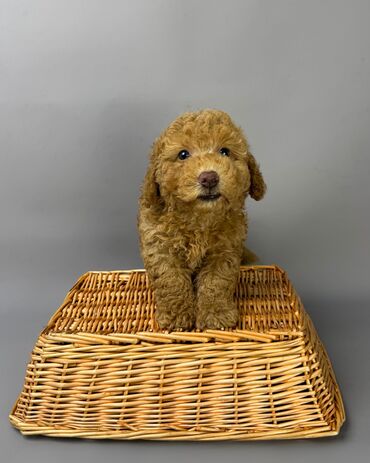 Şəkillərdə səbətdə olan qızılı-qəhvəyi tüklü, balaca ölçülü, qıvrım yunlu sevimli dost yeni ailəsini gözləyir.