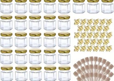 - Şestbucaqlı formalı şəffaf şüşə bankalar
