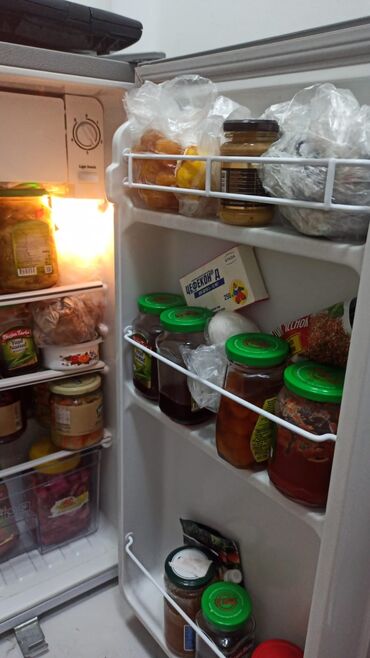 Qida və bankalar şəkillərdə yalnız ölçü və tutumu təsvir etmək üçündür. Soyuducu məişət məqsədli istifadə üçündür, içəridəki məhsullar satışa daxil deyil.
