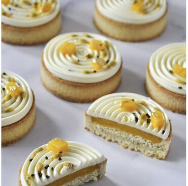 - Ölçülər: bir nəfərlik mini tartlar; həmçinin dekorativ kremlə üstü bəzədilmiş dairəvi porsion desertlər.