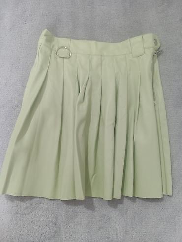 Bershka qadın ətəyi - Model: qatl-qatlı (pliseli) mini ətək - Rəng: açıq krem/sarı - Ölçü: EUR S / USA S / MEX 26 (etiketdə göstərilib) - İstehsal: Turkey - Dizayn: yüksək belli görünüş, bərabər d...