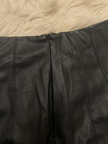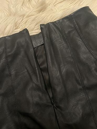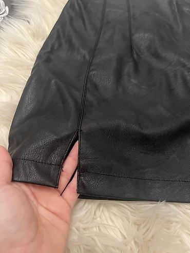 Qısa ətək – qara rəng, dekorativ tikiş və aplike detalı - Model: qısa, düz kəsim - Rəng: qara, ağ kontrast tikişlərlə - Material görünüşü: dəri-effekt/yele əks olunan teksturalı parça - Ön hissə: ...