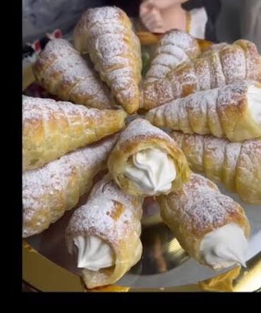 - Krem borular (tubalar): Xəmir dilləri kimi qat-qat vərəqli (puff) xəmirdən bişirilir, içi vanilli yüngül krem ilə doldurulur, üzəri pudra şəkəri ilə səpilir.