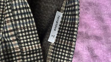 Qadın ətəyi – (houndstooth) naxışlı - Stil: Düz kəsim, dizdən yuxarı mini/orta uzunluq - Parça: Qalın toxumalı tweed tipli material, payız-qış üçün münasib - Rəng: Qəhvəyi-bej və krem qarışığı xə...