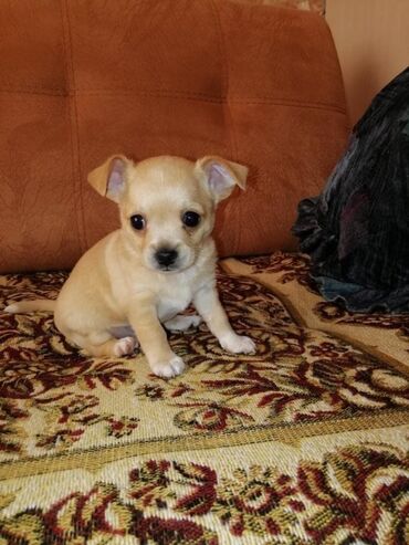 Çox balaca ölçülü, qısa tüklü, açıq-qəhvəyi (fawn) rəngli çihuahua balası. Xüsusiyyətlər: - Minyatür bədən quruluşu, iri ifadəli gözlər və böyük qulaqlar - Qısa, sıx və parlaq kürk - Kompakt gövdə...