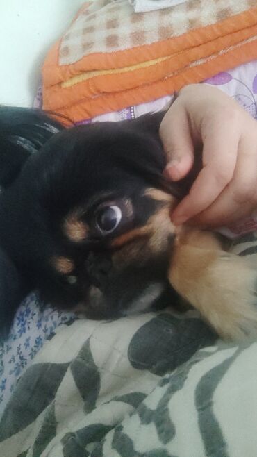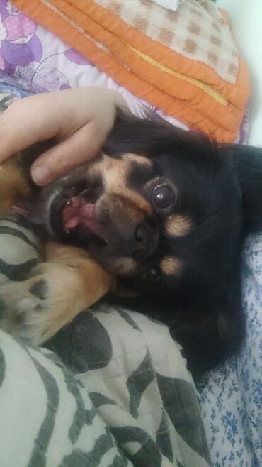 Şirin miniatür it – uzun tüklü, qara xəzli, ağız və ayaqlarda qızılı-narıncı ləkəli rənglərlə. Qısa burunlu, böyük ifadəli gözləri var. Boyunluq və ağ rəngli, qırmızı yazılı köynək geyinir (üzərində “38” və “AWESOME” yazıları görünür). Kiçik ölçülü, qucaq sevməyi ilə diqqət çəkən, ev şəraitinə uyğun yoldaş heyvanı. Yumşaq xəz, tüklü qulaqlar və yığcam bədən quruluşu ilə mənzildə saxlanılması rahatdır. Şəkillərdə mehriban xarakteri, qucaqda rahat durması və oyuncanlığı aydın görünür. Kiçik ölçülü, sakit və ailə mühitinə uyğun yoldaş axtaranlar üçün ideal seçim.