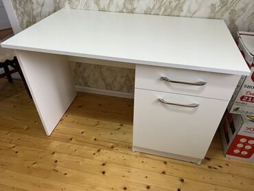 Dırnağ masası - Material: metal karkas + ağac teksturalı MDF/layihə taxtası - Rəng: təbii ağac üstü, qara metal çərçivə - Sağ tərəfdə 3 geniş çekmece – metal tutacaqlar, sənədlər və ofis ləvazimat...