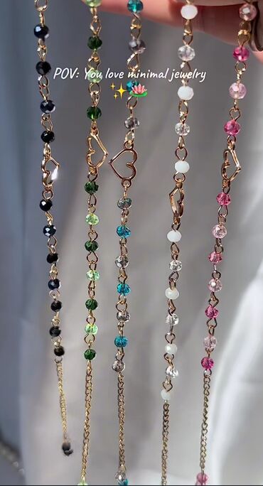 Qalın qolbaq 18 manat Qızıl göz muncuğu qolbaq 9 manat Qaşlı üzük (19razmer) 3 manat Adi üzük 3 manat Klounlu sep 18 manat Diqqqətlə oxuyub vatsappda yazın Zərif formalı daşlarla bəzədilmiş b...