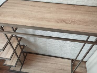 - Dizayn: Loft/industrial üslubda açıq konstruksiya. Qəhvəyi-bürünc tonlarda metal çərçivə, ağac teksturalı lövhələrlə (üst panel, alt panel və yan rəflər).