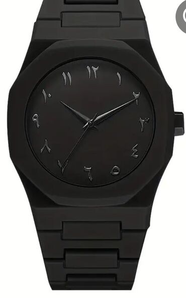 - Siferblat: tam qara, şərq–ərəb rəqəmləri ilə; üç əqrəbli analog göstərici (saat, dəqiqə, saniyə)