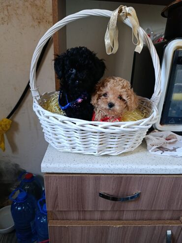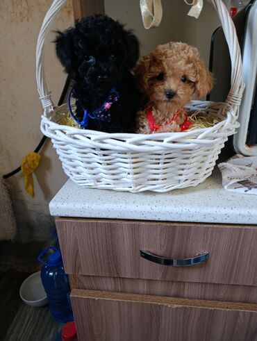 Oyuncaq pudel – 2 ədəd - Cins: Toy Poodle (oyuncaq ölçü) - Rənglər: qırmızı-qəhvəyi və krem - Xüsusiyyətlər: hipoallergen yun, az tük tökür; ağıllı və öyrədilməsi asan; mənzil və ev şəraitinə uyğu...