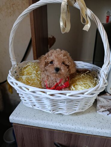 Miniatür pudel tipli balaca it - Rəng: açıq qızılı/şam relifi - Tükləri: sıx, qıvrım, hipoallergen quruluş; az tökülür, mütəmadi kəsimə uyğundur - Ölçü: kiçik, mənzil və ev şəraitinə uyğun - Xarakt...