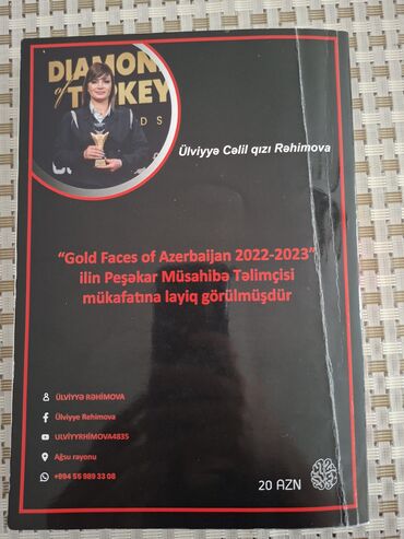 - Arxa üzərində qeyd: “Gold Faces of Azerbaijan 2022–2023” – ilin Peşəkar Müsahibə Təlimçisi mükafatı.