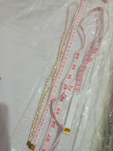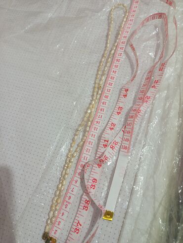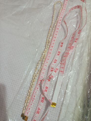 İnci boyunbağı..temiz cay mirvarisi - Material: Təbii görünüşlü, düzensiz formalı xırda krem-ağ inci dənələri - Dizayn: İncilər qruplar halında çiçəkvari düyünlərlə ardıcıl yerləşdirilib; aralıq h...