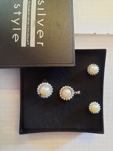 Mirvari, qornıy xrustal, gümüş(925 prob). komplekt. Üzük(1 daş yox). 200azn alınıb silver style da. 80azn qoyuram