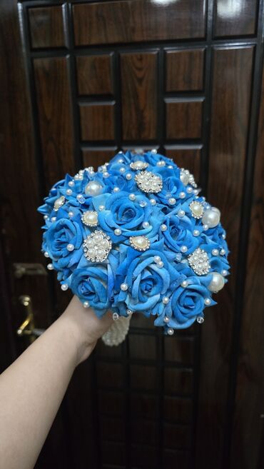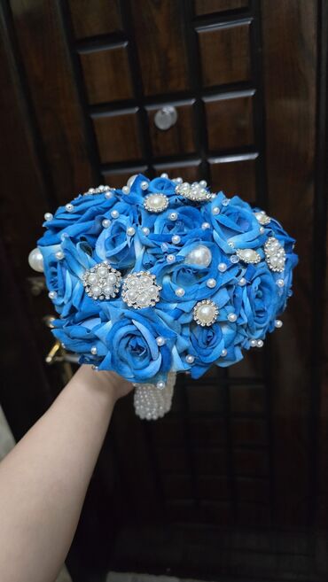 Mavi güllərdən hazırlanmış gəlin gülü (buketi)