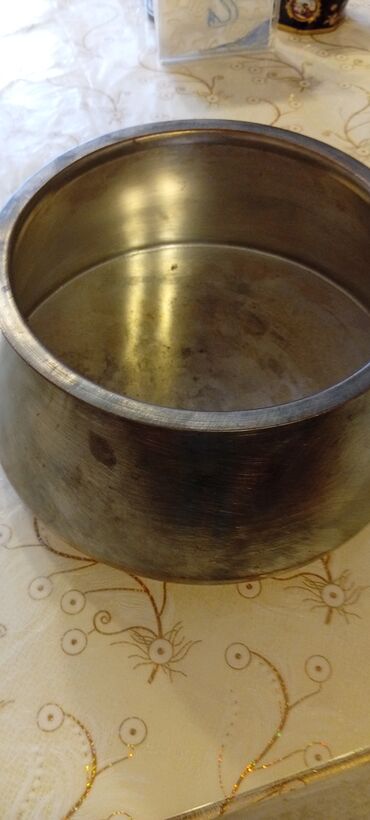 Alüminium qazan – klassik “siniqli” formalı - Material: qalın divarlı alüminium - Ölçülər: daxili diametr təqribən 30 sm, hündürlük təqribən 16 sm - Şəkillərdə ölçü lentilə göstərilib - Geniş dib ...