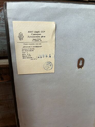 - Üz qablaşdırması və sənaye etiketləri saxlanılıb: “Azərbaycan çekişi”, MMP Azərb. SSR Suvenir-sənətkarlıq fabriki, Bakı. Adı: “Девушка с джейраном” (Ceyranlı qız). Artikul: C-А3-22a. TU 205-01-105-78. 1-ci sort. Buraxılış ili etiketdə möhürlə qeyd olunub.