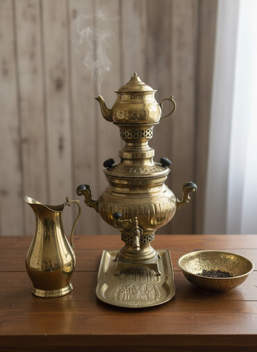 Klassik metal samovar - Material: tökmə metal/gövdə pirinç tonlarında
