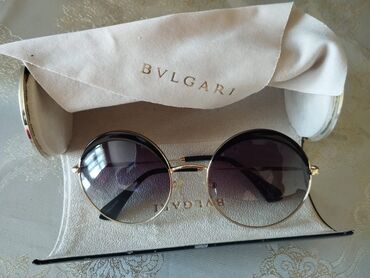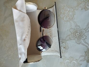 BVLGARI gün eynəyi - Brend: Bvlgari - Forma: dairəvi çərçivə - Çərçivə materialı və rəngi: metal, qızılı ton - Şüşələr: tünd bənövşəyi/boz gradient linzalar - Körpü və qulplar: nazik metal konstru...