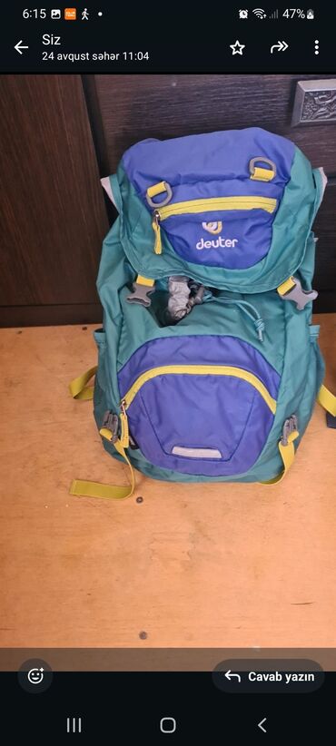- Deuter brendli funksional çanta: çoxsaylı bölmələr və fermuarlı ciblər, ön elastik kəmər, yan şəbəkə cibləri, möhkəm tutacaqlar və tənzimlənən çiyin kəmərləri; açıq hava fəaliyyətləri və məktəb üçün praktik təşkilat imkanı.