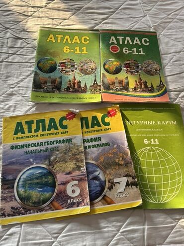 Rus dilində nəşrlərdir. Mətn və üz qabıqlar şəkillərdə göstərilib. 6 və 7-ci sinif üçün ayrıca atlaslar, həmçinin 6–11 aralığını əhatə edən ümumi atlas və kontur xəritələri mövcuddur.