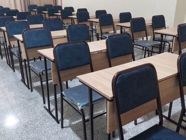Tədris sinifləri və kurs otaqları üçün masa–stul dəstləri Məhsul təsviri: - İki nəfərlik sinif partaları: düz, stabil metal karkas, üstündə MDF/LDSP iş səthi - Rənglər: ağ və ağac teksturalı masa ...