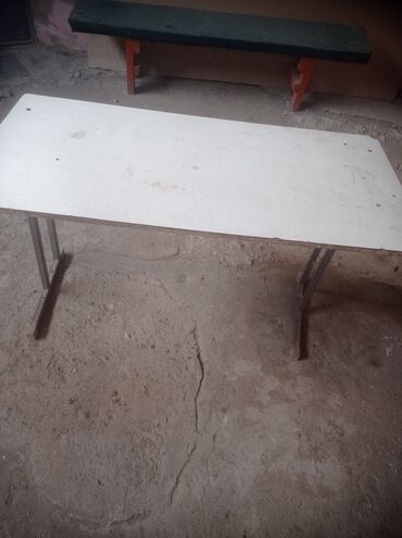 - Parta: düzbucaqlı iş səthi, ağ rəngli laminat/taxta üstlük. Metal karkas və metal ayaqlar. Uzun yazı və rəsmlər üçün geniş masa sahəsi. Alt hissədə taxta panel mövcuddur.