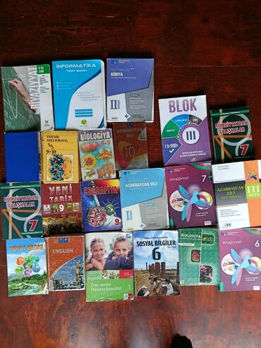 - Tarix və cəmiyyət: “Yeni tarix 9”, “Sosyal Bilgiler 6” (Türkcə), “Ümumi biologiya” rus dilində köhnə nəşr, coğrafiya 9.