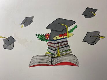 - Tədris temalı illüstrasiyalar: məzun papaqları, kitab dəstələri, diplom və laurellar kompozisiyası