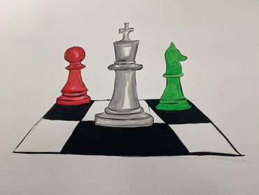 - Şahmat mövzusu: şah, fil və piyada fiqurları ilə dama taxtası
