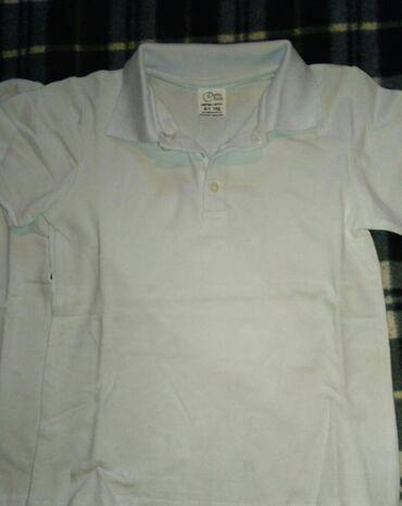 Uşaq üçün polo köynək - Brend: IVEN’S Kids Junior - Bədən ölçüsü: 146 (etiketdə göstərilib) - Rəng: ağ - Yaxa və manjetlər: tünd göy rəngdə, mavi zolaqlı trikotaj - Model: klassik polo – yarı düym...