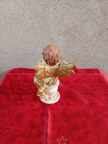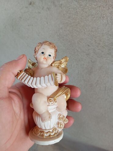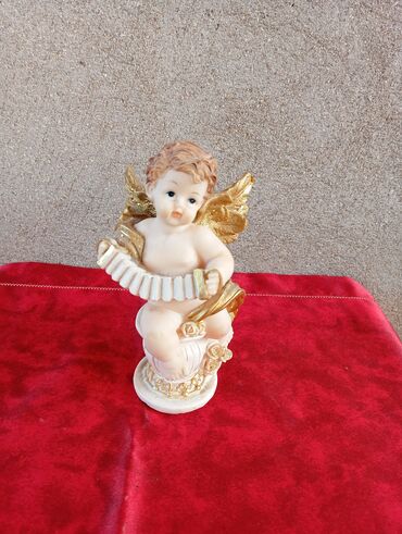 - Dizayn: oturmuş körpə mələk motivi, qızılı qanadlar, əlində kiçik akkordeon; güllü və relyef naxışlı postament üzərində