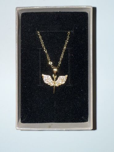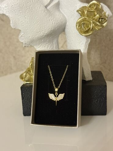 925 prob gumuşdur.Sep yenidir heç taxilmiyib ciddi müşteriye endirim olacaq.Mələk qanadlı kulonlu zərif gümüş boyunbağı. - Dizayn: Açıq şəkildə işlənmiş iki qanad və mərkəzdə enən damcı formalı el...
